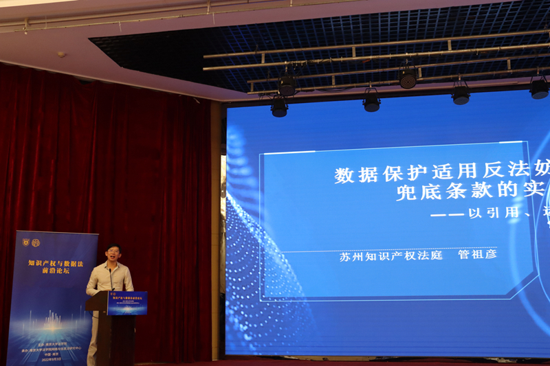 苏州知识产权法庭副庭长管祖彦作了题为《数据保护适用反法妨碍网络服务兜底条款的实证分析——以引用、运用、利用为变量》的演讲,他梳理了十余起国内外网络数据保护的案例,归纳分析了我国司法实践中数据保护的法条援引情况,接着将数据使用分为引用、运用、利用三种模式,对其法律适用问题进行了相应的类型化分析,总结归纳出了目前数据保护领域法律适用的主流立场,并提出了自己的思考。