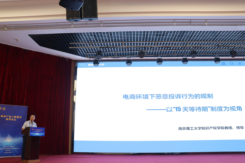 南京理工大学知识产权学院梅术文教授作了题为《电商环境下恶意投诉行为的规制——以“15 天等待期”制度为视角》的主题报告,围绕“15天等待期”制度,对电商环境下恶意投诉行为的规制问题展开分析。他提出应当修改《电子商务法》第43条中的“15天等待期”为“合理期限”,在满足一定条件时应当允许反通知前置,以缓解“通知—删除”制度与“反通知—恢复”制度中采取必要措施上的时间差异带来的不平衡,同时应当赋予平台一定的合作治理权限。