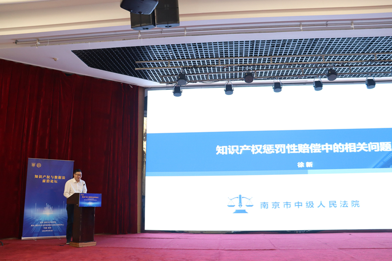 南京知识产权法庭庭长徐新发表了题为《知识产权惩罚性赔偿中的相关问题》的主题演讲,他从具体案例出发,归纳出惩罚性赔偿制度的补偿功能、惩罚功能和遏制功能,探讨了审慎谦抑原则、过罚相当原则、司法定价原则三项法律适用原则,并释明惩罚性赔偿的构成要件与计算方法。