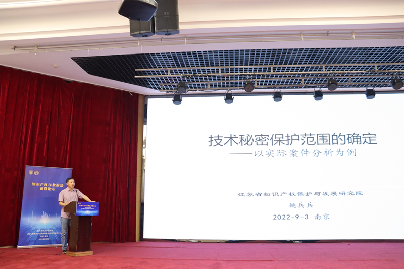 在第三单元“知识产权保护实践的多维视角”中,江苏省知识产权保护与发展研究院副院长姚兵兵发表了题为《技术秘密保护范围的确定——以实际案件分析为例》的主题报告,分析了技术方案、技术手段、技术特征等概念之间的关系,通过典型案例入手,提出了如何合理划定技术秘密的方法,并指出技术秘密的实质是技术信息。他还认为,应继续推进民刑层层递进式的商业秘密保护体系,综合运用好民刑司法程序,有效提升司法保护商业秘密的整体效应。在该单元,实务界的专家还就可预见规则对专利等同原则适用的限制及相关重大案例、知识产权质押融资的风险管理及价值评估问题作出分享。