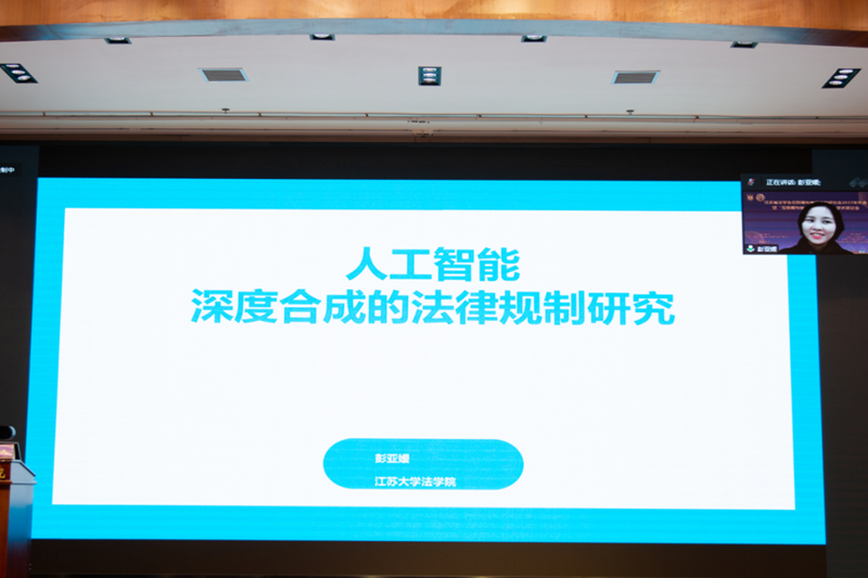 江苏大学法学院讲师、中南财经政法大学知识产权研究中心博士后研究人员彭亚媛做了题为《人工智能深度合成的法律规制》的报告。她深入分析了在目前的人工智能深度合成领域中,国家、企业、个人三者的利益存在交汇点,即对低成本技术普及、安全秩序、权益救济的需求,而目前的监管机制无法完全满足这些需求。她认为可以形成一个三方共同的监管机构,并对该机构的组织和运行提出了自己的构想。