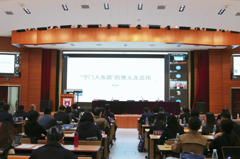 中国法学会网络与信息法学研究会常务副会长兼秘书长、中国社会科学院法学研究所副所长周汉华研究员做了题为《“守门人条款”的意义及其适用》的报告,他将守门人条款概括为“3+2”结构,即三个要件、两类义务,并指出目前我国《个人信息保护法》中“守门人条款”实施效果并不理想。他指出守门人条款的三点不足,并据此提出准确识别数字守门人、明确守门人双重行为规范、统一适用标准三项建议。