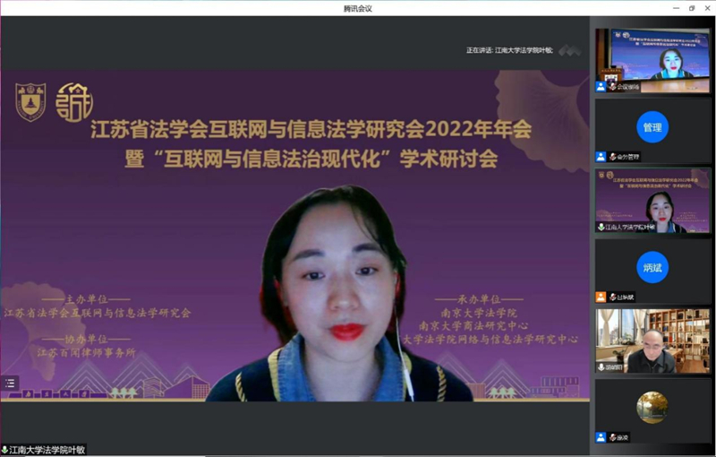 2022年11月19日,江苏省法学会互联网与信息法学研究会2022年年会暨“互联网与信息法治现代化”学术研讨会在南京成功举办。本次会议由江苏省法学会互联网与信息法学研究会主办,成人网
