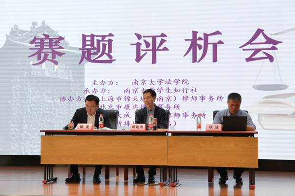 副教授尚连杰老师、北京大成(南京)律师事务所高级合伙人陈尧律师、北京大成(南京)律师事务所高级合伙人耿健律师就本届比赛赛题进行评析。嘉宾介绍赛题设计思路,将赛题所涉学理问题与司法实践动态相结合,对选手们在竞赛中的表现进行深入指导,并解答了现场同学对赛题的疑问。