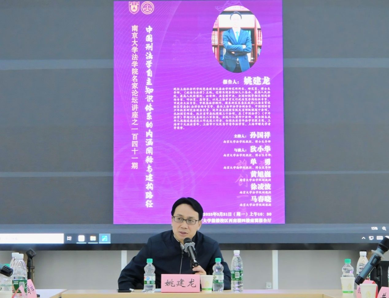 鼓楼校区西南楼四楼报告厅举行,姚建龙教授进行了题为《中国刑法学自主知识体系的内涵阐释与建构路径》的学术报告。