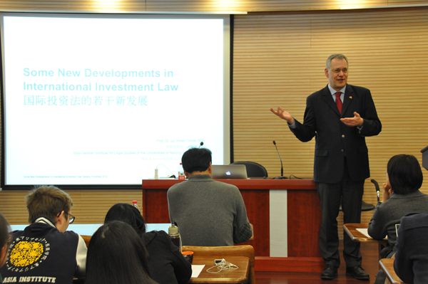 中德法学研究所德方所长史彼得教授(Prof. Dr. Peter-Tobias Stoll)作了题为“国际投资法中的若干新进展”(Some New Developments in International Investment Law)的精彩报告。本次报告会由成人网