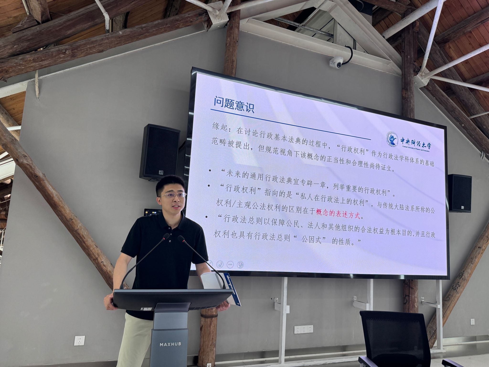 中央财经大学法学院张泽宇老师围绕《行政权利何以成立》作了报告。张泽宇指出,在讨论行政基本法典的过程中,“行政权利”作为行政法学科体系的基础范畴被提出,但规范视角下该概念的正当性和合理性尚待证立。因此,他在梳理中国当代行政法学术史和概念史的基础之上,从利益主张的规范表达、“行政法上的权利”的学理概念、行政法律关系的内容三个维度出发,探讨了行政权利何以成立这一问题,强调我们既要在表述上关涉行政权利,也要在行政法观念上提出反思。最后,讨论了行政法律关系理论与行政行为理论之间的关系,指出行政行为是行政法律关系的阿基米德之点,行政法律关系理论在行政行为解释困难时提供兜底效果。