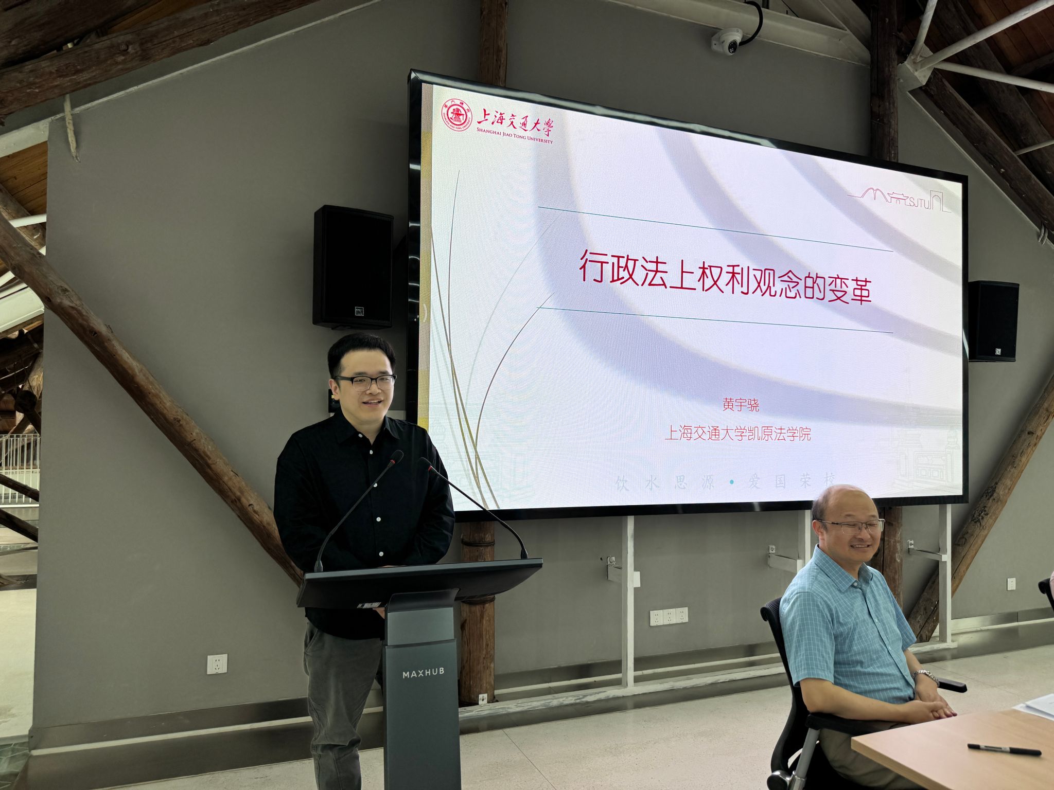 上海交通大学凯源法学院黄宇骁副教授就《行政法上权利观念的三代演进》进行分享报告。黄宇骁指出,行政法上的权利观念十分暧昧。不仅行政法权利的概念相对陌生,行政权利的性质、来源及与依法行政的关系往往模糊不清,而且传统权利观念将公民的权利与自由统计式罗列。因此,黄宇骁独创性地指出,行政法上权利观念经历了三代演进:第一代既得权观念→第二代实体请求权观念→第三代利害调整与行政法律关系。他质疑传统的行政法律关系属于纵向结构,主张行政法上的实质权利义务关系应是公民之间的横向关系,行政机关只是作为仲裁者进行社会利益的横向调整。他进一步介绍了多种利害关系类型,如相互利害关系、共同利害关系、互换利害关系、复合利害关系等有趣现象。总结了第三代权利观念与传统权利观念的区别,强调了其理论创新之处。