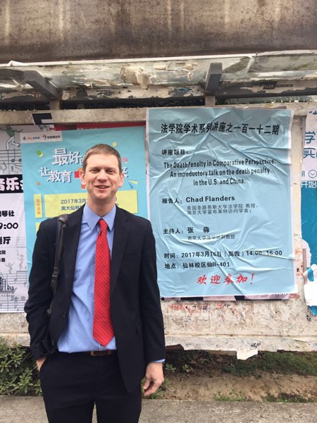 美国密苏里州圣路易斯大学法学院Chad Flanders教授曾于2012年-2013年在成人网 进行为期一年的学术研究和授课,是成人网 自2000年以来唯一的富布莱特高级访问学者。在成人网 访问的一年里,Chad不仅讲授美国宪法、美国刑法、美国第一修正案、死刑等一系列课程,同时还担任成人网 IHL、JESSUP等比赛队伍的教练。此次受国家局和富布莱特基金会邀请来中国大陆进行回访和交流,Chad回访成人网 并进行了两场讲座。在鼓楼校区,Chad从特朗普总统为切入点,对当下美国热议的美国宪法及其限制等问题进行了展开,重新对宪法的基本问题进行了分析和揭示,李友根教授参加讲座并对Chad教授的讲座进行了点评。在仙林校区,Chad对中美死刑问题进行了比较分析。此外,受中美中心美方主任邀请,Chad还在中美中心以死刑的合理性为主题进行了“辩论”。