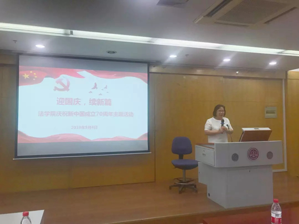 会上,教师代表金俭从一名优秀共产党员的角度分享了她眼中的新中国;吴卫星老师以《习近平生态文明思想浅介》为题,介绍了新中国环保领域法制建设取得的巨大成就。(法学院)