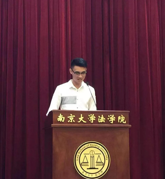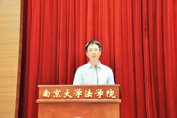 第一项议程,由刚刚分流到法学院的2018级本科生王若然同学作为新生代表发言。王若然同学分享了自己的学习体会,认为正是在大类学习模式中,逐渐发现自己对法学专业的兴趣,并最后选择分流至法学院。在法学院,王若然同学在各位老师细心专业的指导下,进一步发现了法学的美,也更加感受到南大法学院的优良学风。
