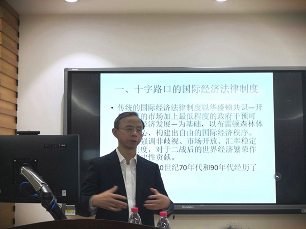 2019年11月12日晚7:00,中国法学会世界贸易组织法研究会副会长、中国法学会国际经济贸易法研究会副会长,来自对外经贸大学的左海聪教授在逸夫管理科学楼1205学术报告厅开展主题为“人类命运共同体思想与国际经济法律制度的改革”的讲座。本次讲座由成人网