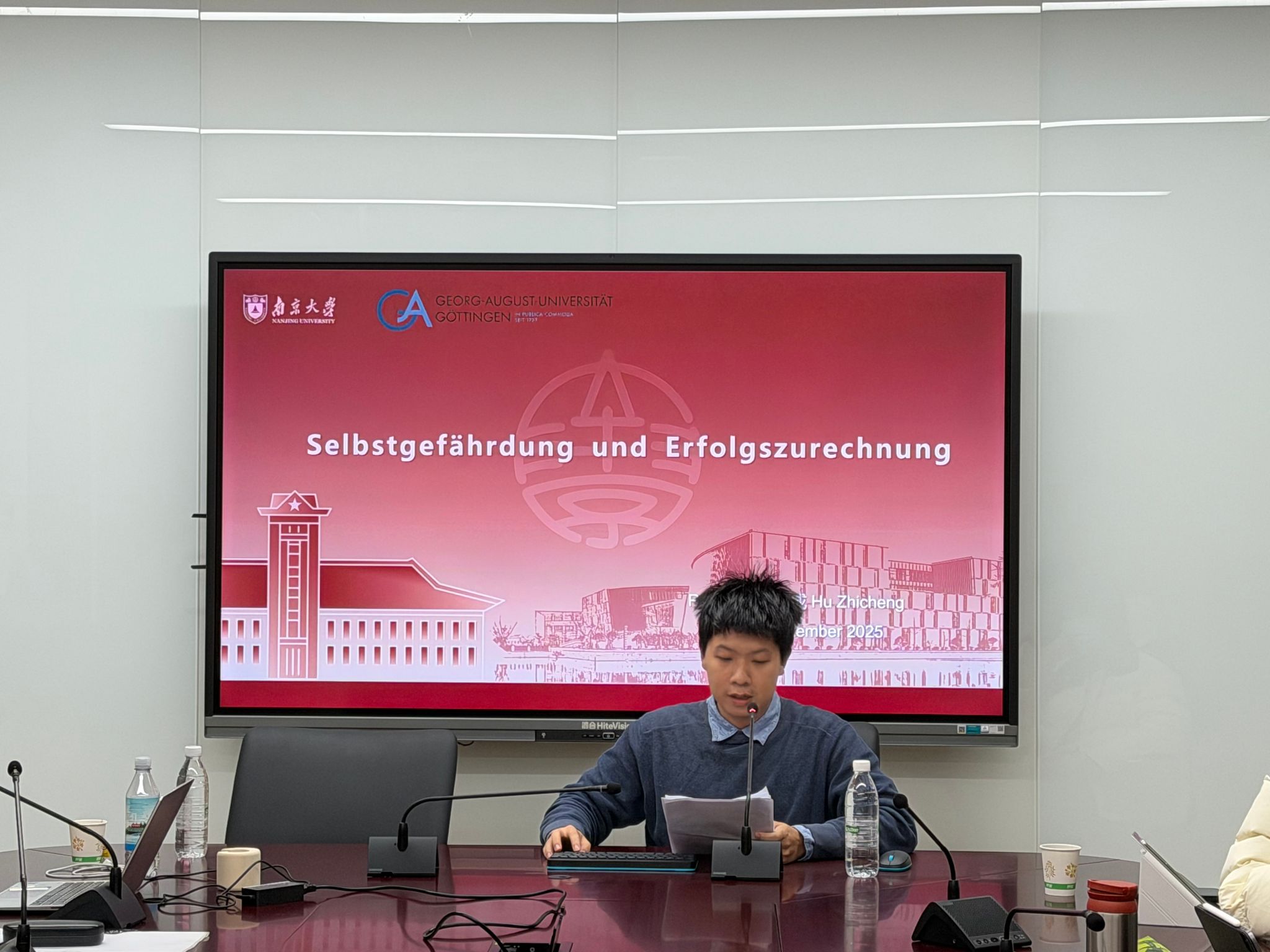 鼓楼校区西南楼135会议室举行。中德法学研究所德方副所长Holger Hanisch、中方指导教师徐凌波副教授、蔡琳副教授、助理教授金健老师以及中德法学研究所的2024级研究生共同参与了本次研讨课,研讨课全程用德语进行。