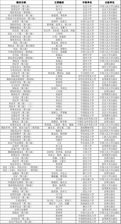 “十四五”普通高等教育本科国家级规划教材入选名单中的70部法学教材