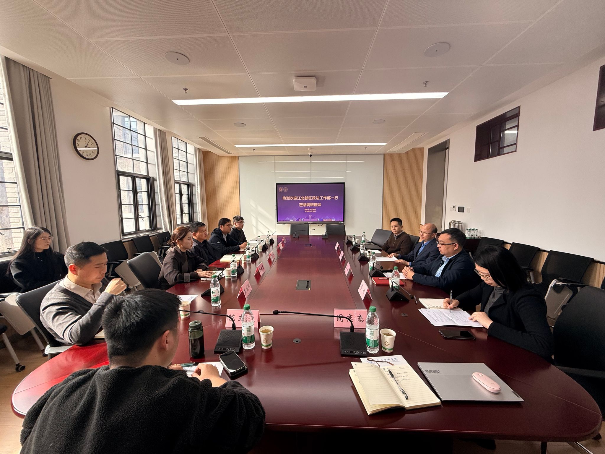 党委书记蒋恩铭、党委副书记马骏等班子成员及教师代表出席交流活动,会议由法学院副院长杨阳主持。