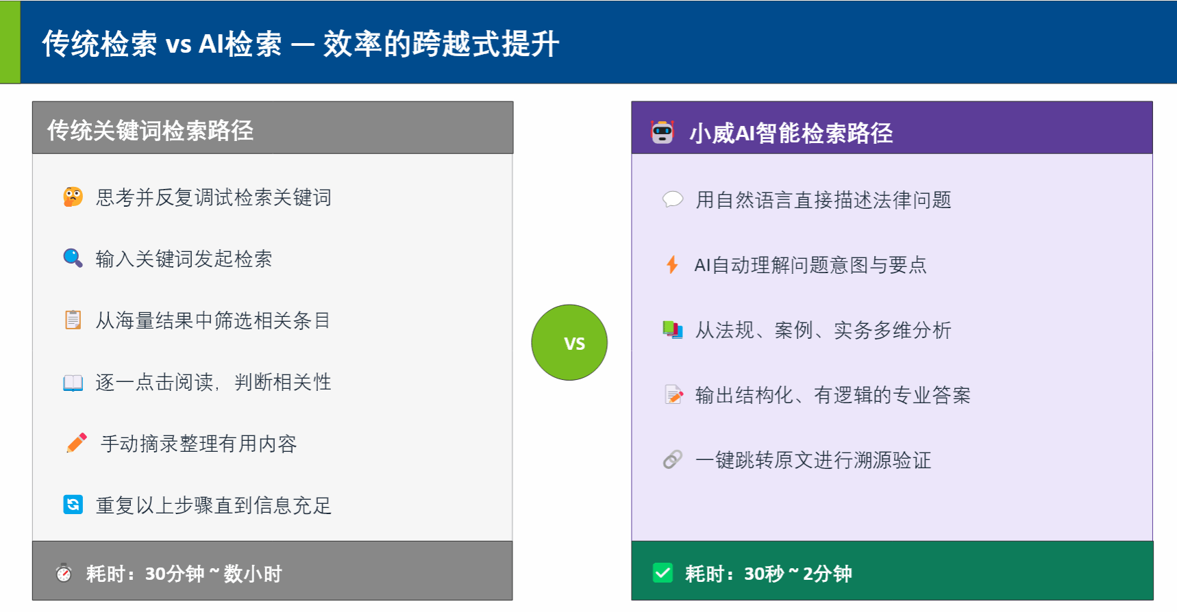 · 小威AI +丨法律检索:平台对法规进行专业加工和效力标注,并有关联解读文章。AI工具生成的答案支持一键溯源至真实法规,有效避免在研究中引用已失效或错误的法律依据,保障学术严谨性。