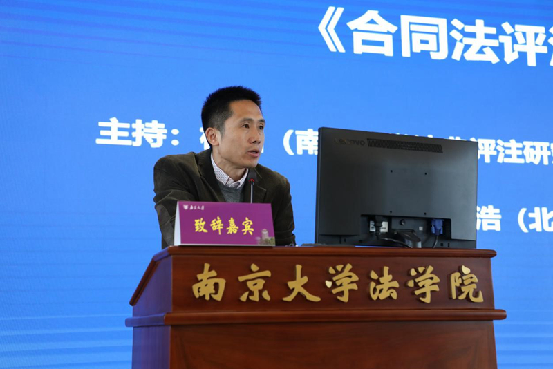 中国法学会民法学研究会副秘书长、中国政法大学教授刘家安在致辞中祝贺本次会议顺利召开,并指出:法典评注具有集理论界、实务界的知识贡献和经验于一身的特点。在成人网 法典评注研究中心的大力推动下,法典评注工作在国内的民法学领域将具有越来越重要的意义。最后,刘教授代表中国法学会民法学研究会对南大法学院表示感谢,也代表中国政法大学祝愿朱庆育教授在成人网 继续取得重要的学术成就。