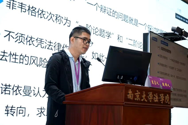 北京大学法学院刘岩博士的报告主题为《类案审判制度的功能、性质以及正当性——以系统论为分析视角》,他认为类案审判制度的性质在于通过组织决定非自发性地改变法律系统的记忆,以及通过类似案件类似审判的要求强制法官在未来的审判中重视该记忆,以此来缓解或至少部分解决裁判尺度不一致的问题并实现正义。吉林大学法学院金彦宇博士作了以《论裁判说理的论题学方法——以指导案例 99 号为例》为主题的报告,他借用论题学的方法对指导案例 99 号一审判决书进行实证分析,并佐证了论题学方法在裁判说理中的可行性。中山大学法学院林树煌博士报告主题是《制度性话语与惯例性话语的博弈逻辑——< 巴县档案>衙蠹案件为例》,他以《巴县档案》中的一起衙蠹案件,管窥诉讼两造的博弈构造,理解其中的权力运作机理。上海交通大学凯原法学院雷槟硕博士的报告主题为《判断案件相似的关键:规范与事实对应》,他认为事实相似是在比较中项(中介规范)保证下的规范判断,需要考察涵摄方法中要件事实作为事实与法律规范对应方案,从而提出符合我国成文法制度要求的案件事实相似的判断方法。