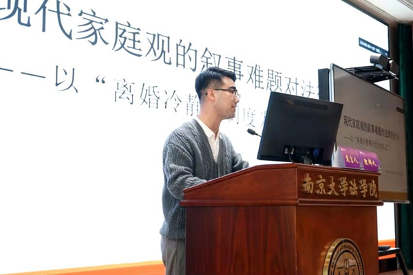 清华大学法学院韩富鹏博士报告主题为《民法中“例外规定不得类推适用”的反思与重构》,他认为例外规定不得类推适用不能一概而论,需要更进一步地精细化区分。中国人民大学法学院赵轩毅博士报告主题是《论民法典中死者人格利益保护的法理基础及其规范谱系——以< 民法典>第九百九十四条为视角》,他认为在既有的民法教义学框架下,从维护公序良俗及保护既有法律关系参与者权益的角度出发,去进行解释和适用死者人格保护条款对完善死者人格利益保护体系而言更加合理。南京师范大学法学院邢伟星博士报告主题为《< 民法典>“另有规定”条款的法理阐释》,他认为《民法典》“另有规定”条款价值权衡的法理依据有二,一是“特别法优于一般法”原则,二是依法条授权立法理论。吉林大学法学院马智勇博士报告主题为《现代家庭观建构的前提性分析——以“离婚冷静期制度”为切入点》,他认为“离婚冷静期制度”遭受争议,是因为在道德约束力维度其所坚持的“再家庭化”观念的正当性被叙事难题这一现实所动摇。