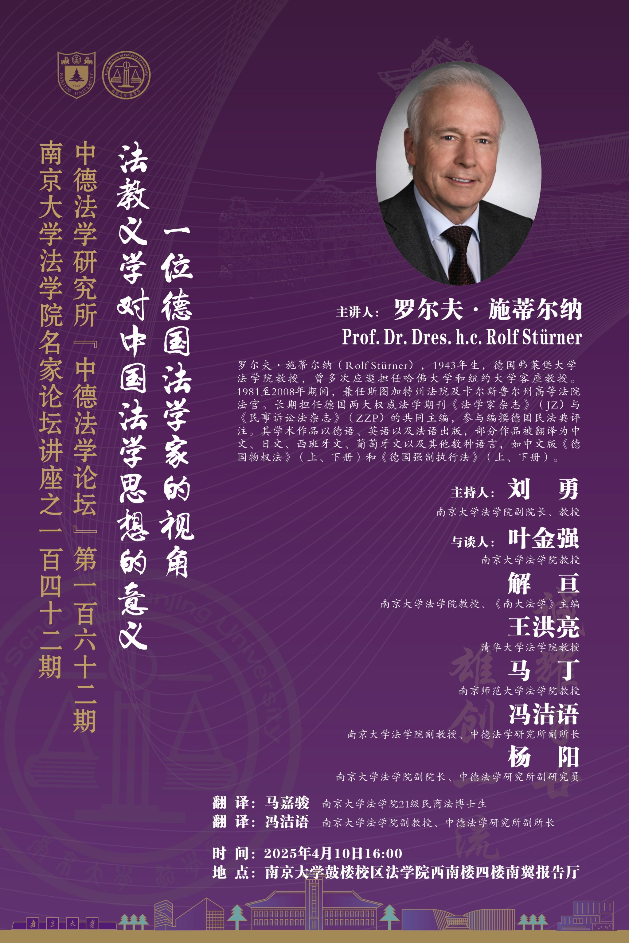 成人网 名家论坛讲座之一百四十二期中德法学研究所“中德法学论坛” 第一百六十二期海报