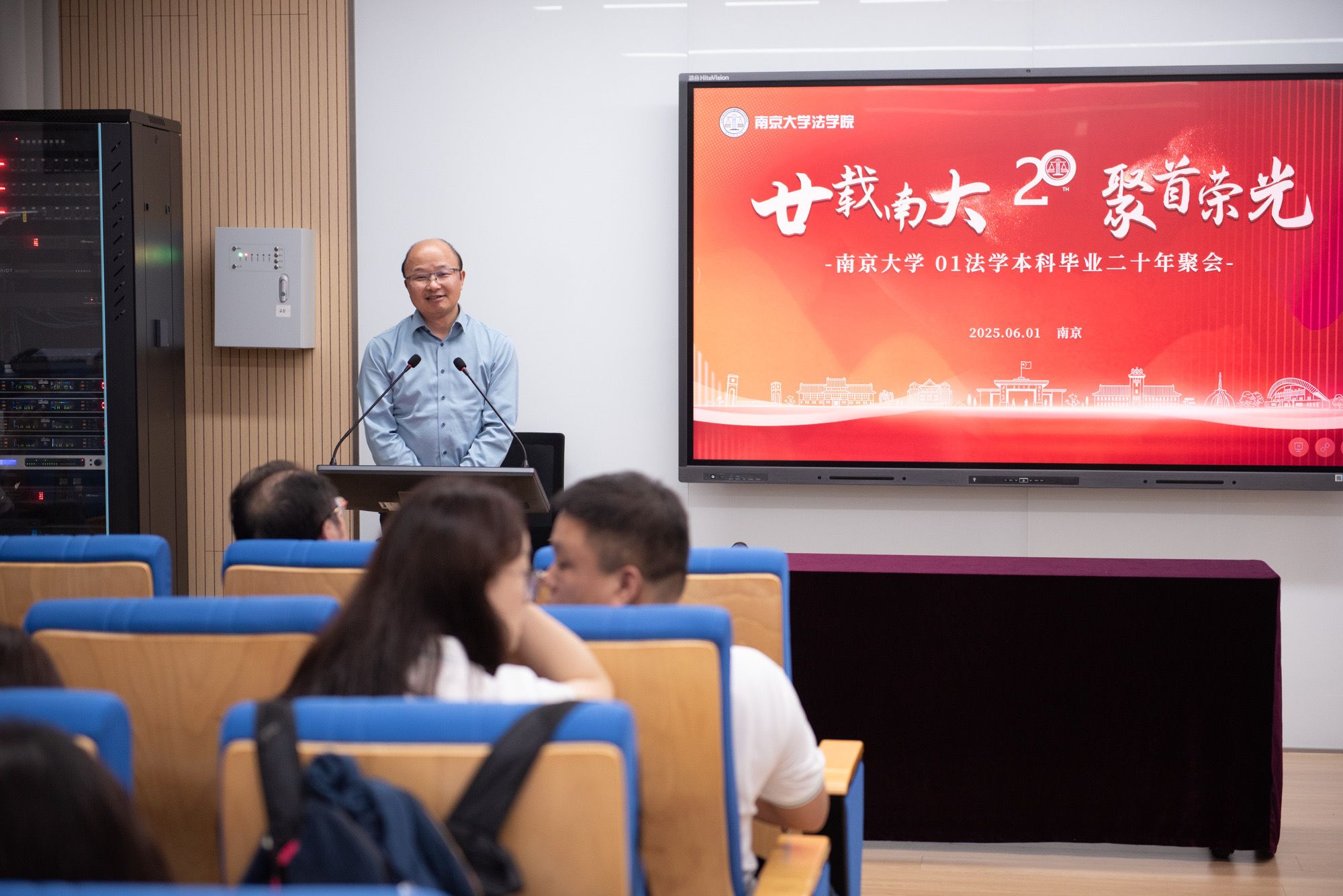 ,成果斐然。法学院也秉持传承与创新并举的理念,学术底蕴日益深厚,人才培育成果丰硕,学科评估跻身A类行列,学术声誉与影响力不断提升。他饱含深情地说到:“20年后回到母校,大家依旧青春少年。南大的发展、法学院的进步,任何时候都离不开校友们的关心与支持,衷心的感谢大家!”