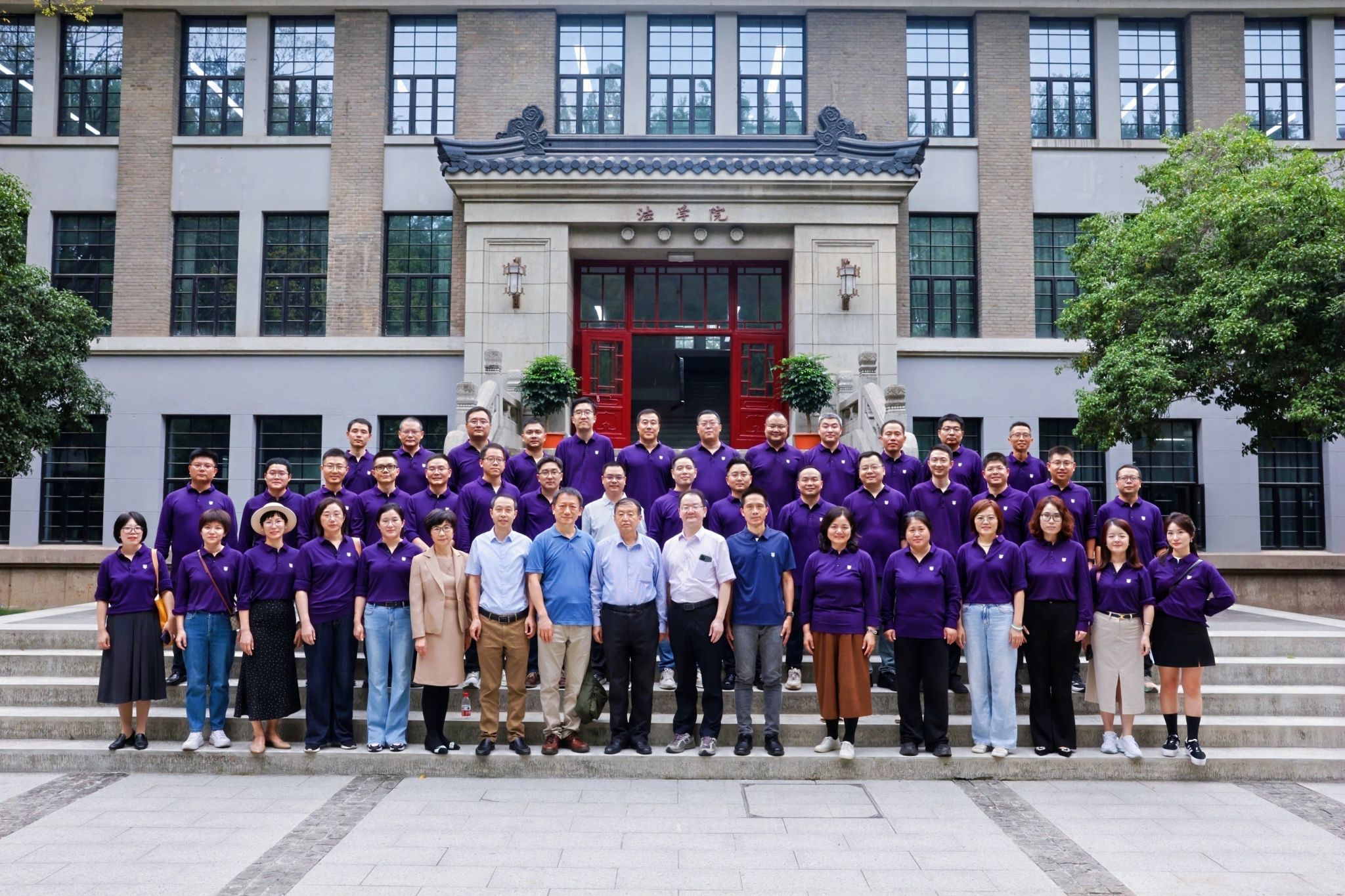 随后,同学们移步至法学院楼前合影留念。快门按下的瞬间,笑容与情谊被定格,将这场跨越十五载的欢聚时刻,永久镌刻在每个人的记忆里。