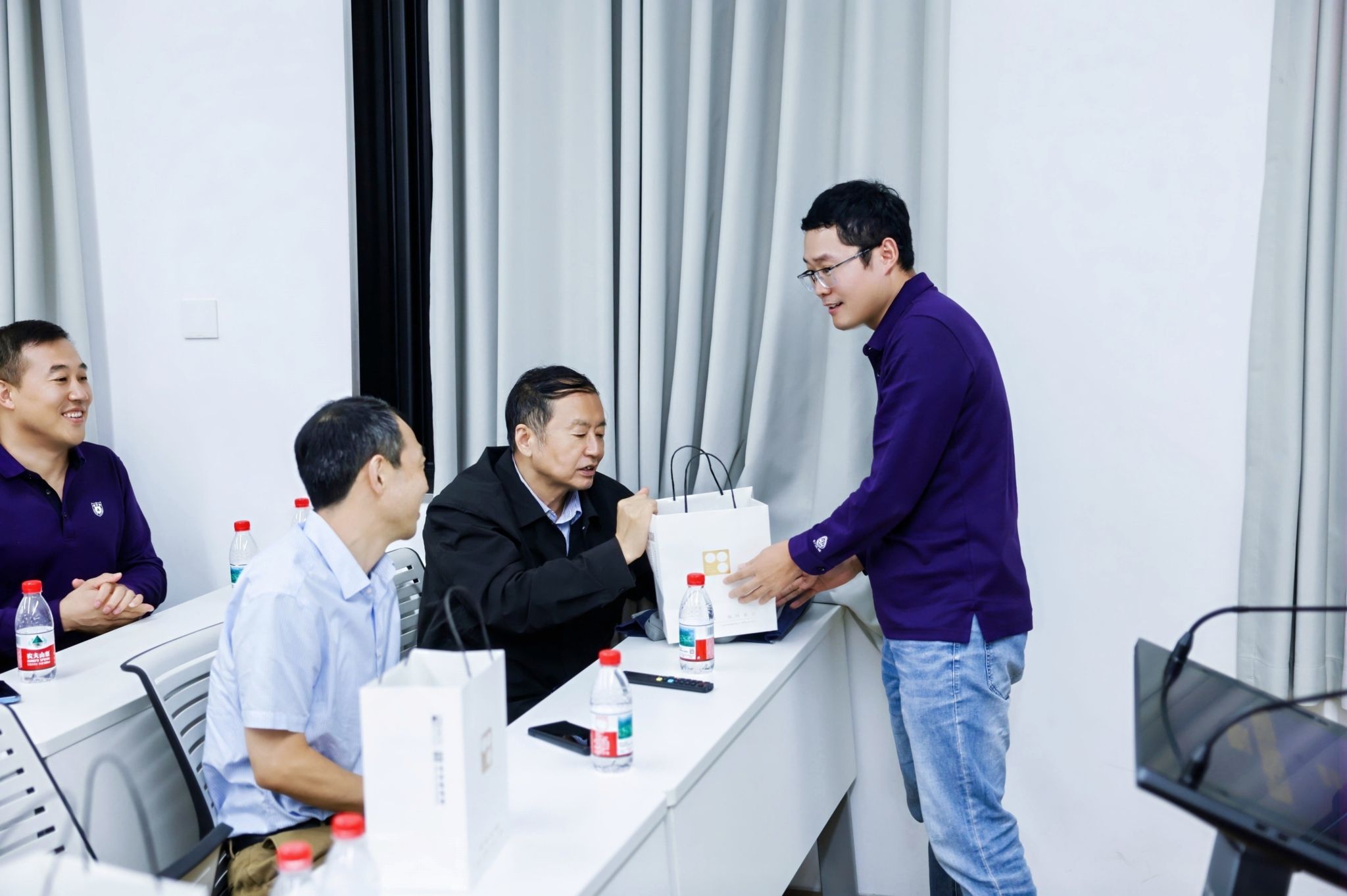 座谈会最后,07法硕同学代表陈从广上台,向各位恩师赠送定制纪念水杯,表达对老师们辛勤教诲的深切感恩和崇高敬意。