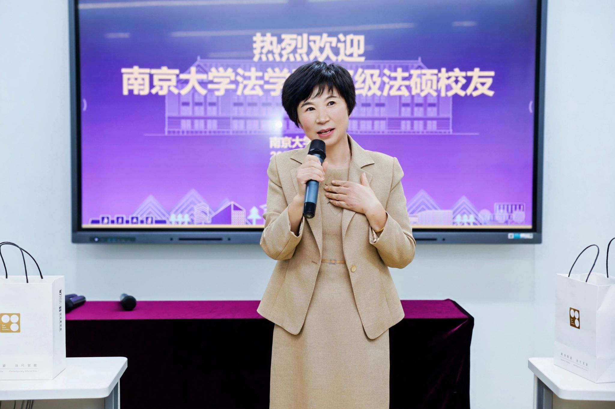 座谈会上,还有一位特殊的“家人”受邀到场——20舍宿管阿姨孙静女士。她曾用无微不至的关怀,温暖了07法硕同学们的校园时光。现场,大家向孙阿姨致以最热烈的掌声与敬意,感谢她多年来如亲人般的守护与关爱,这份跨越身份的温情,让现场氛围更添暖意。
