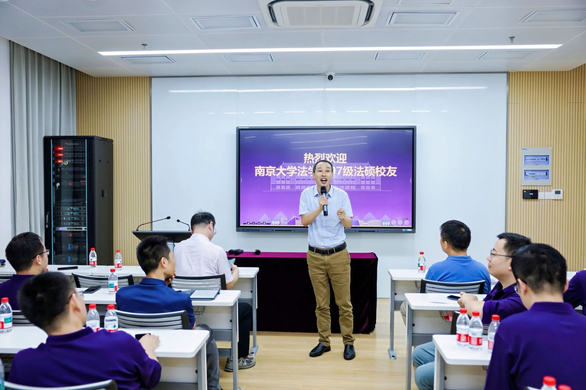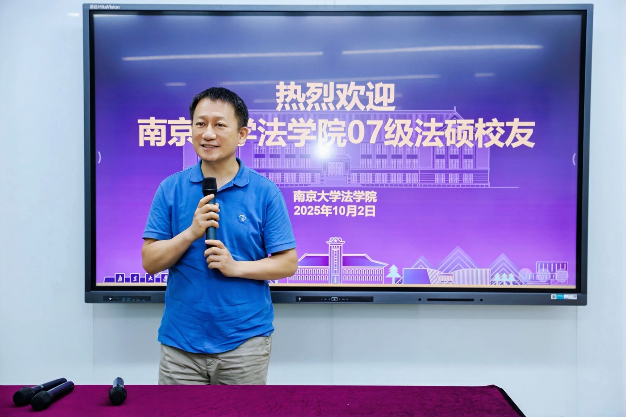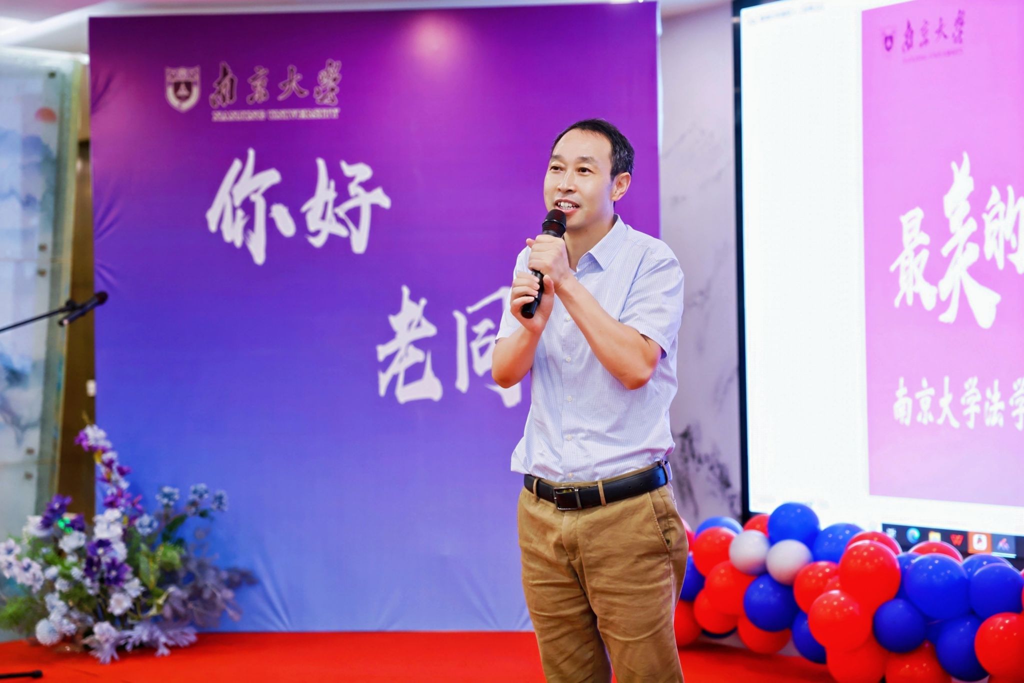 副院长杨阳致辞。他介绍了法学院近年来的发展历程,从学科建设的坚实步履到学术成果的丰硕积淀,他诚挚希望各位校友关心关注法学院的发展,并希望大家以实际行动服务社会,回馈母校。同时也为07法硕的同学们送上最真挚的祝福,祝福大家身体健康、家庭幸福、事业有成。